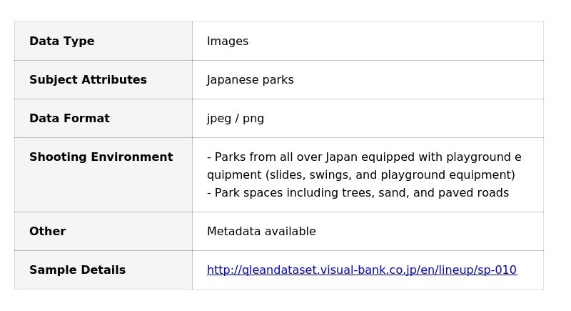 Qlean Dataset、「日本の公園画像データセット」を提供開始