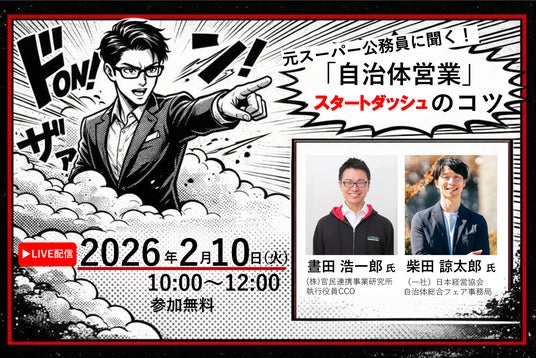 一般社団法人日本経営協会(本部:東京都渋谷区、会長:高原 豪久)は、官民連携における“ミスマッチ解消”をテーマとした無料オンラインセミナー「元スーパー公務員に聞く!『自治体営業』スタートダッシュのコツ」を2026年2月10日に開催いたします。