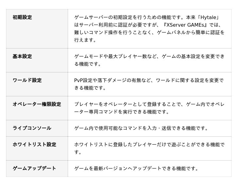 ゲームサーバーの各種設定を行える「ゲームパネル」では、コマンド操作を必要とせず、より柔軟かつ快適にサーバー設定を行えるよう、「Hytale」固有の設定機能を備えています。https://www.youtube.com/watch?v=NJ8WLTS7SMw
