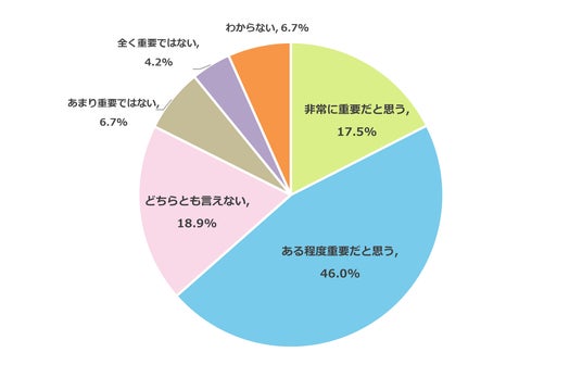 子どもの英語学習において、英検(R)の取得はどの程度重要か調査しました。その結果、63.5%が「重要だと思う」(非常に重要だと思う:17.5%、ある程度重要だと思う:46.0%)と回答しました。近年の英語教育の変化に伴い、小中学生にとって英検(R)の役割や重要性も高まっていることがうかがえます。