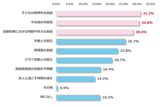 この結果から、多くの保護者が、試験勉強の負担や合否の結果による子どもの精神的なストレスを懸念していることがわかります。