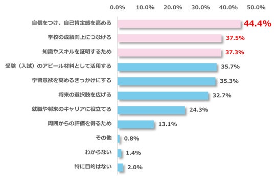 ・小中学生の資格・検定取得目的、最多回答は「自信をつけ、自己肯定感を高める」