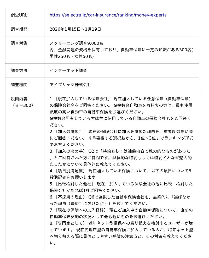 調査記事:https://selectra.jp/car-insurance/ranking/money-expert