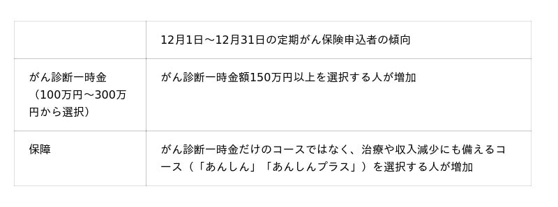1. 定期がん保険が保険選びの選択肢に追加されたことにより、がん保険申込者はより手厚い保障を確保する傾向へ