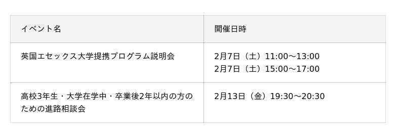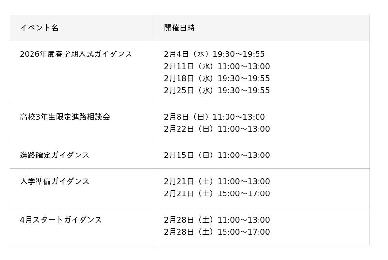■進路検討中の方向けイベント開催日程(高校生・大学生・既卒・社会人の方)