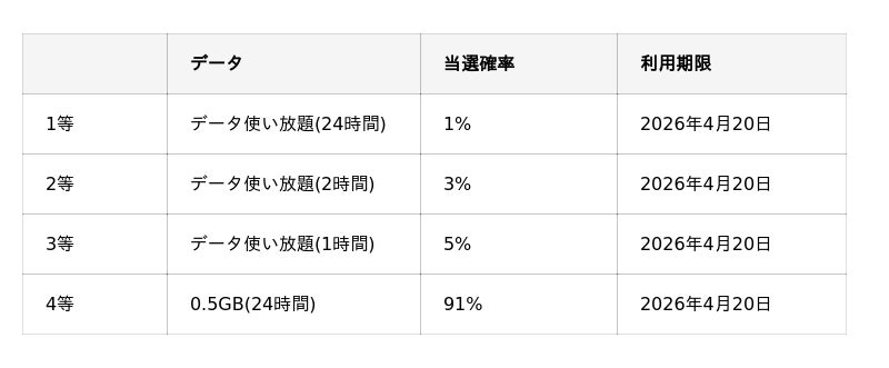 データ特典のいずれかが抽選で必ず当たるトッピングです。また、購入者全員にもれなくmini BIG 1口をプレゼントします。(注2)