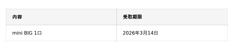 ※mini BIGの受取時期により、対象の開催回や結果発表確定日が異なります。詳しくはau PAY totoホームページをご確認ください。