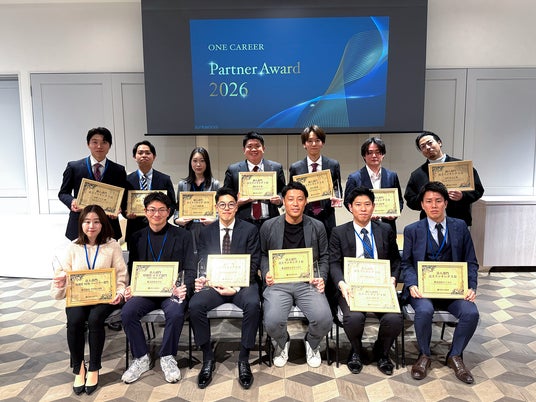 新卒採用サービス「ワンキャリア」を展開する株式会社ワンキャリア(本社:東京都渋谷区、代表取締役社長 執行役員CEO:宮下 尚之、以下「ワンキャリア」)は、2026年1月16日(金)に、販売パートナー企業の功績を表彰する「ONE CAREER Partner Award 2026」を開催し、9社10名が受賞しました。