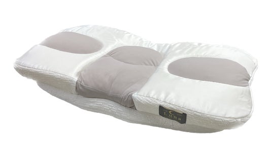 「睡眠も美容時間のひとつ」そんな想いから、女性開発チームが中心となって誕生したのが「YOKONEGU beauty Luna」です。「美容のために一晩中仰向けで寝ている」という人もいるかもしれません。しかし、寝返りは⾎行促進のために⽋かせないといわれており、睡眠の質を左右します。いびき‧無呼吸‧腰痛防止のために弊社で推奨している「横向き寝」。特殊三日月形状のウレタンフォーム(ルナサポート)が横向き寝時にしっかりフェイスラインを支える事で顔にかかる圧力を軽減し、頬の当たる部分はふんわりタッチのポリエステルつぶ綿で優しく包み込む構造(チークサポート)を採用致しました。正しい寝姿勢を導き、美容を意識する女性に安心感もたらす事を目指して開発された「YOKONEGU beauty Luna」は、 現代女性の睡眠環境を美しくアップデートする新提案の枕です。
