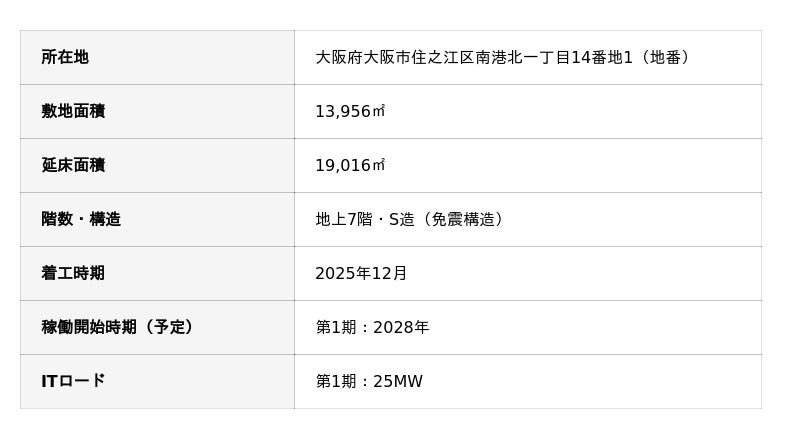 本事業地は、大阪中心部のインターネットエクスチェンジ※2から約10kmに位置し、金融取引、リアルタイムAI推論などの高度な情報処理を可能にする、低遅延のネットワーク接続を実現します。