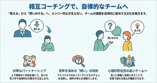 属人化解消とチーム活性化を促す「相互コーチング研修」をリリース。ピア・コーチングの手法を体系的に習得:社員研修のリスキル