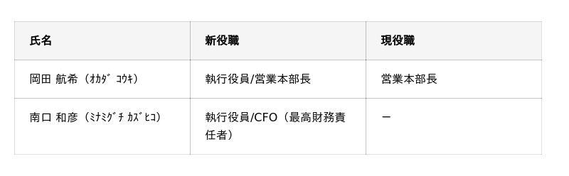 企業の次なる成長に向けた経営体制の強化のため、2026年2月1日付けで執行役員(2名)が就任