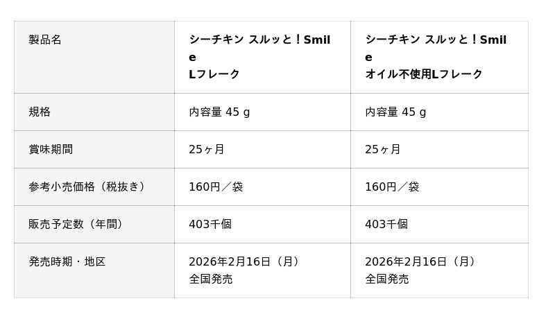 はごろもフーズ株式会社(本社:静岡県静岡市 社長:後藤佐恵子)は、寒天仕上げで中身が取り出しやすい『シーチキン スルッと!Smile』2種を発売します。