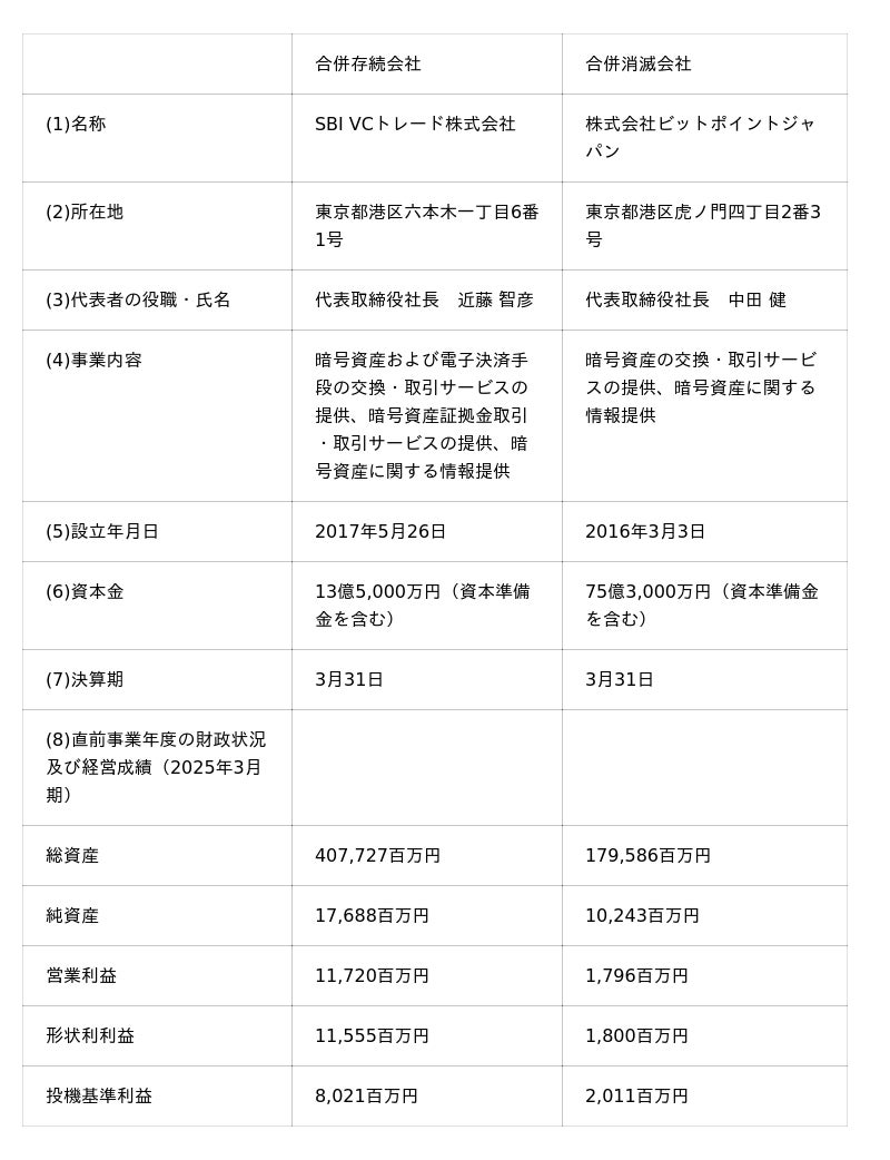 SBI VCトレード株式会社と株式会社ビットポイントジャパンの合併に関するお知らせ
