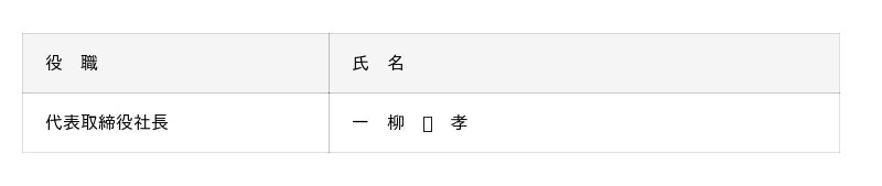 代 表 者:代表取締役社長 一柳 吉孝