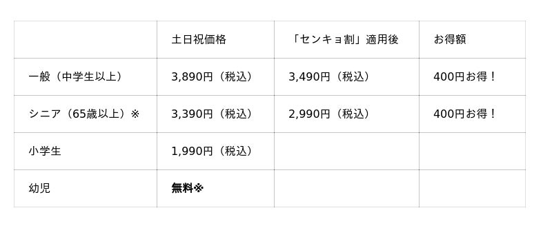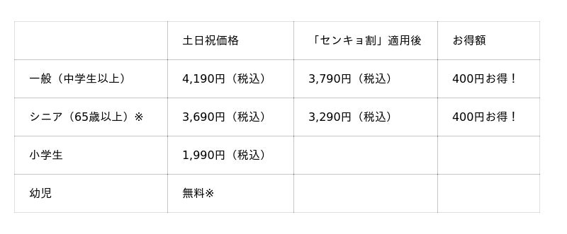 ※一般(中学生以上)・シニア(65歳以上)のお客様