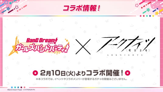株式会社ブシロード(本社:東京都中野区 代表取締役社長:木谷高明)は、2026年1月29日(木)に配信した「バンドリ!TV LIVE 2026」#299にて、スマートフォン向けゲーム「バンドリ! ガールズバンドパーティ!」(以下、ガルパ)で開催を予定しているドリームフェスティバルガチャや、「バンドリ! ガールズバンドパーティ×アークナイツ」コラボ、第7回ガルパ杯に関する続報などの新情報を発表したことをお知らせいたします。