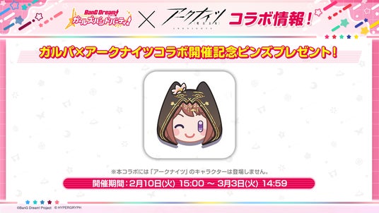 3.「ガルパ×アークナイツコラボ開催記念ピンズプレゼント!」開催決定!