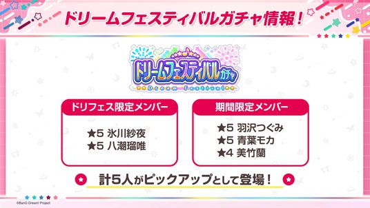 また、期間限定メンバーとして、★5羽沢つぐみ、★5青葉モカ、★4美竹蘭の3人が先行登場いたします。