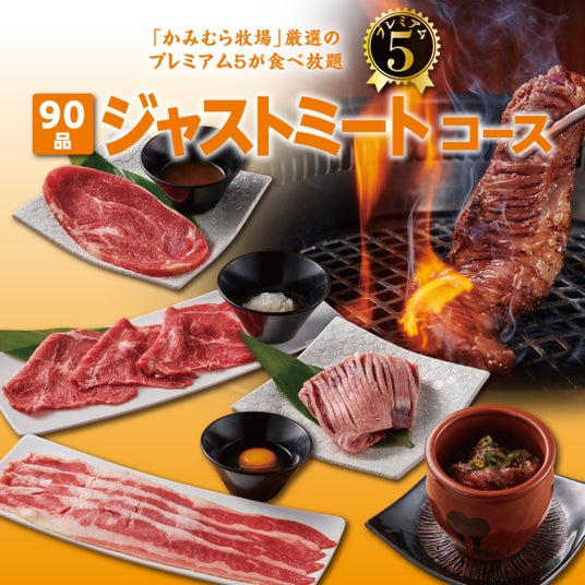 ◆「かみむら牧場」厳選の「プレミアム5」が食べ放題!90品『ジャストミートコース』 KAMIMURA BAR付き
