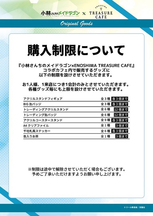 会場にて、ENOSHIMA TREASURE CAFE『小林さんちのメイドラゴン』コラボグッズを販売いたします。