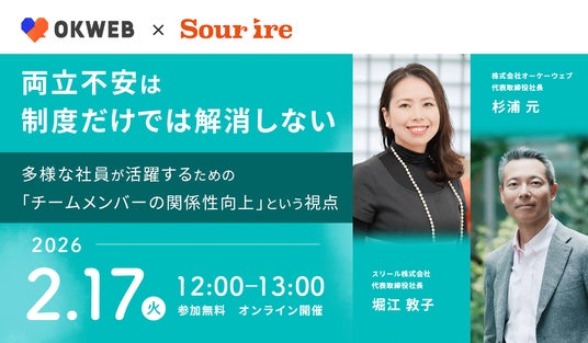 「世界中のありがとうの物語を蓄積し可視化する」をパーパスとし、法人・個人向けコミュニティサービスを展開する株式会社オーケーウェブ(本社所在地:東京都港区、代表取締役:杉浦 元、以下「オーケーウェブ」)は、女性活躍推進・ダイバーシティ推進を掲げ、企業の組織づくりを支援するスリール株式会社を共催企業として迎え、「両立不安は制度だけでは解消しない」をテーマにした無料オンラインセミナーを開催いたします。