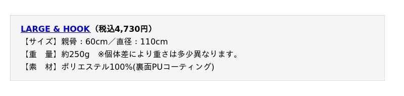 直径110cmながら重さは約250gで、長時間の持ち歩きでも負担を感じにくい軽さが特長です。