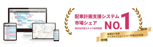 配車計画支援システム部門 市場シェアNO.1獲得(株式会社富士キメラ総研『業種別IT投資/デジタルソリューション市場2024年版』配車計画支援システムカテゴリ内より)、累計利用実績1,000拠点以上。