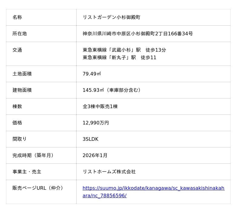総合不動産企業リスト株式会社(代表取締役社長:北見尚之、本社所在地:神奈川県横浜市)の連結子会社であるリストホームズ株式会社(代表取締役社長:杉本敦史、本社所在地:神奈川県横浜市、以下「LH」)は、川崎市中原区小杉御殿町において、愛犬との暮らしを重視した新築分譲住宅「リストガーデン小杉御殿町(以下、本物件)」が完成したことをお知らせいたします。