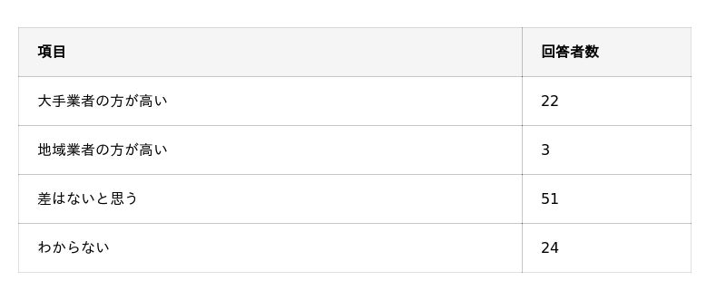 - ユーザーからの印象として、大手業者と地域業者で技術力の差があるとは思われていない。