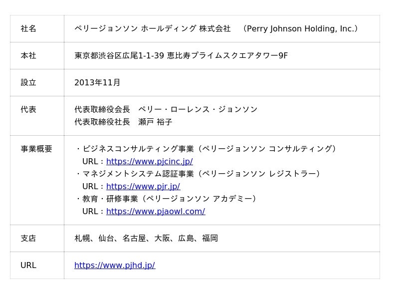 ペリージョンソン ホールディング 株式会社 ペリージョンソン コンサルティング