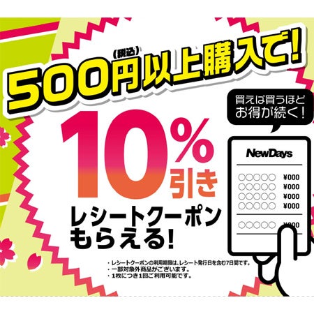 500円以上(税込)ご購入のレシートに、10%引きレシートクーポンが印字されます。