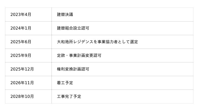 「ニックハイム綱島第一」は、2025年時点で竣工から45年を迎えており、建築基準法改正により現在の耐震基準が設定された1981年以前に設計された「旧耐震建物」です。築年数の経過に伴い、建物の諸設備も現在の建物に要求される標準的な水準を満たすことができない社会的老朽化も進んでいました。建物を維持した場合の費用負担と建替えをした場合の費用負担を比較検討し、建物の大規模修繕や改修ではなく、建替えをすることが最善であるとの結論に達し、建替決議成立より2024年1月の建替組合設立に至りました。