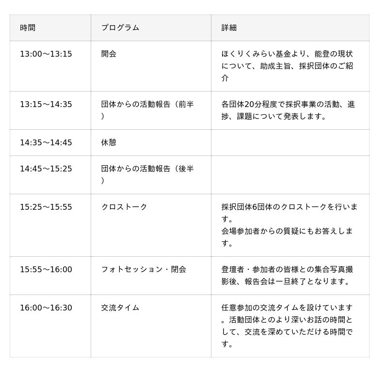 当日は、石川県珠洲市や輪島市を拠点に活動する採択6団体の代表者が登壇し、現在進行形の活動を報告します。