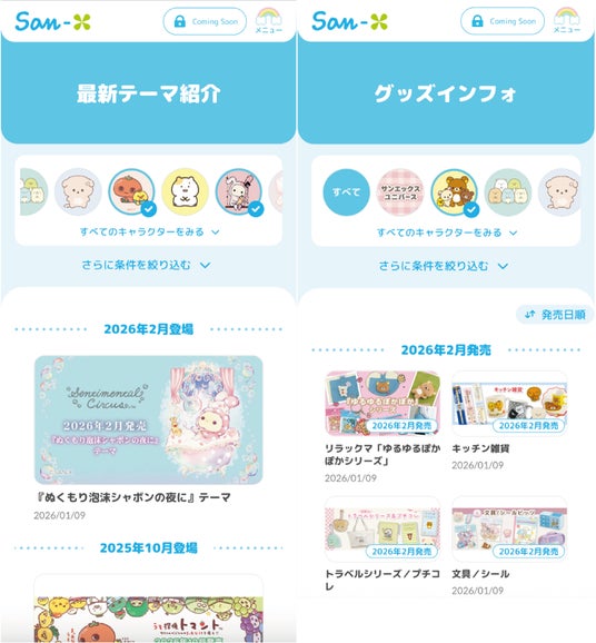 今後、サンエックスネット会員限定ページもオープン予定。