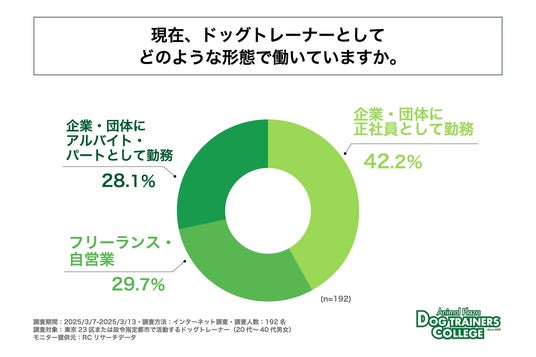 ・ドッグトレーナーの仕事の形態としては、企業・団体に正社員として勤務している人が最も多い