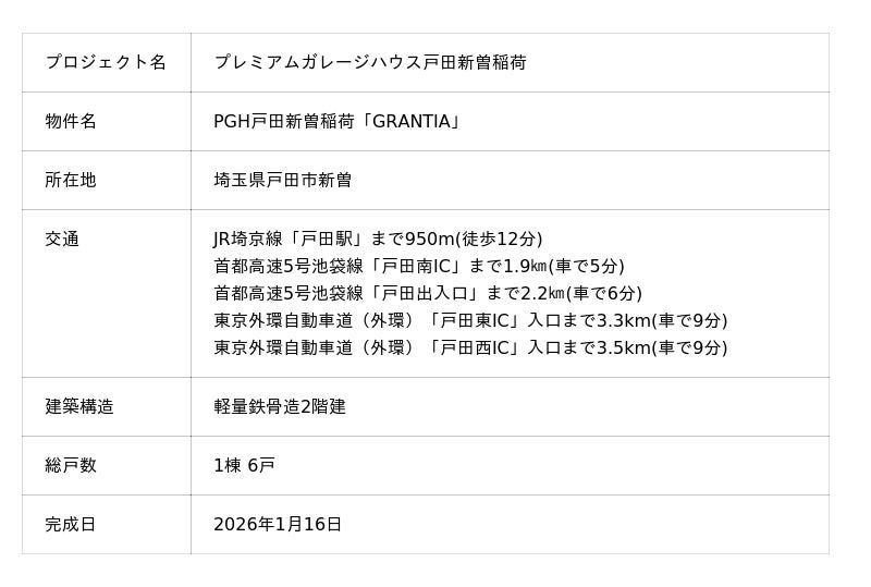 「まちのスキマを、「創造」で満たす。」というパーパスを掲げる、フィル・カンパニーグループ(中核企業:株式会社フィル・カンパニー 代表:外山晋吾 グループ本社:東京都中央区 以下、当グループ)は、埼玉県戸田市新曽において、1棟6戸のプレミアムガレージハウスが完成したことをお知らせいたします。