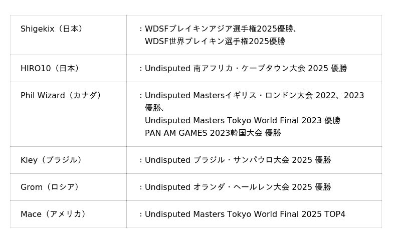 出場予定選手の情報は、特設WEBサイト(https://instax.jp/breaking/tokyo2026/)にて順次公開します。