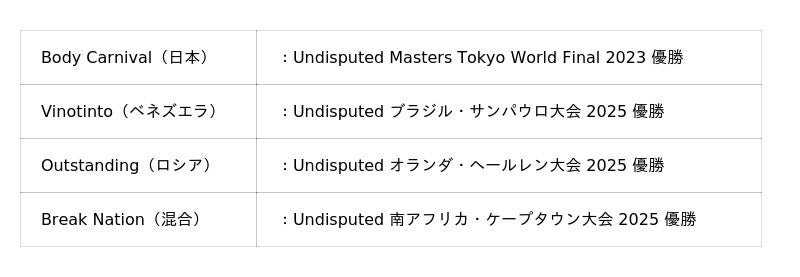 Undisputed Masters Tokyo World Final 2025 優勝者