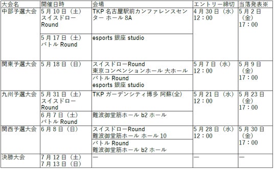 (※)中部予選大会と九州予選大会は、スイスドローRoundとバトルRoundの日程、開催地が異なります。