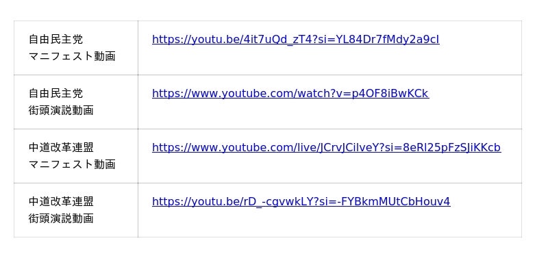 なお本件は「政論解体新書」シリーズの第3弾(比較速報)です。これまでに 2月3日:各党マニフェスト動画の論点分析(調査発表)、2月5日:政見放送のロジック構造・情報量分析(速報)を公開しており、今回は動画としての解説から発信を始め、note記事などへ展開します。また、今晩、最終回として「投票日前」最終分析を公開予定です。