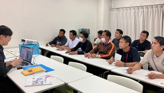 キャムテック エデュックアカデミーで研修初日に座学を受けるドライバー候補生たち
