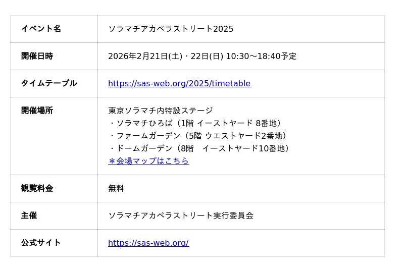~2026年2月21日(土)・22日(日)開催 全国から集ったアカペラグループが、東京ソラマチの空にハーモニーをお届け~