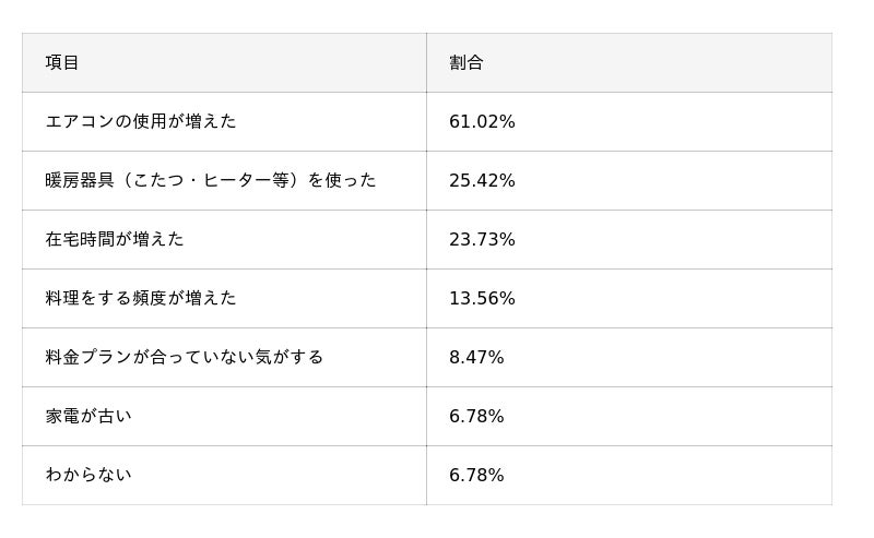 ・電気代が高くなる要因は「エアコン使用」が最多で6割超