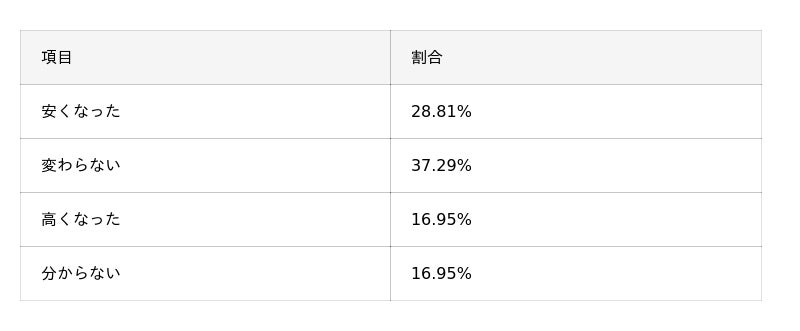 新電力へ切り替えた後の電気代については、「変わらない」が37.3%で最も多く、「安くなった」(28.8%)を上回りました。一方で「高くなった」と感じた人も17.0%おり、切り替え後の実感には差があることが分かります。