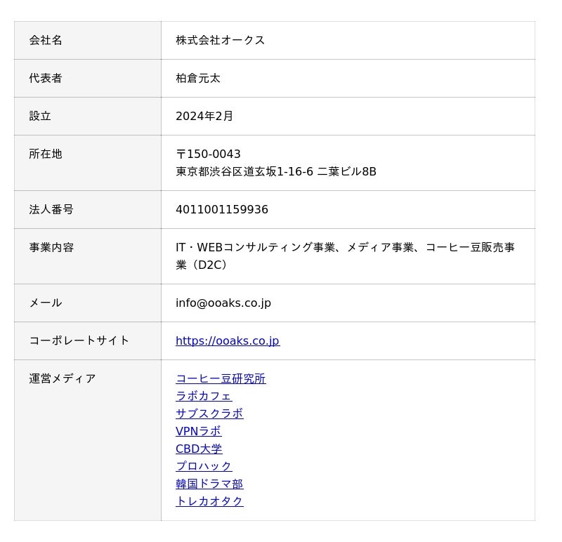 - 2021年:個人事業主として「オークス」を開業。WEBメディア「コーヒー豆研究所」を立ち上げ