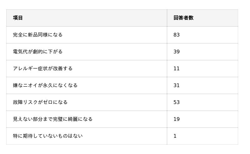 【おうちにプロ】エアコンクリーニングに期待していないことに関するアンケート調査