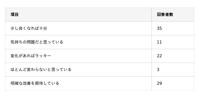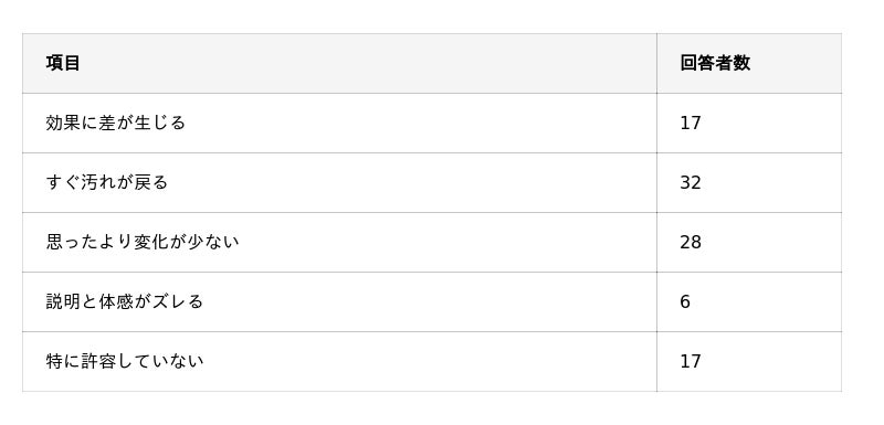 - エアコンクリーニングへの期待値は「少し良くなれば十分」と考える人もいれば「明確な改善を期待している」人も多くいる。