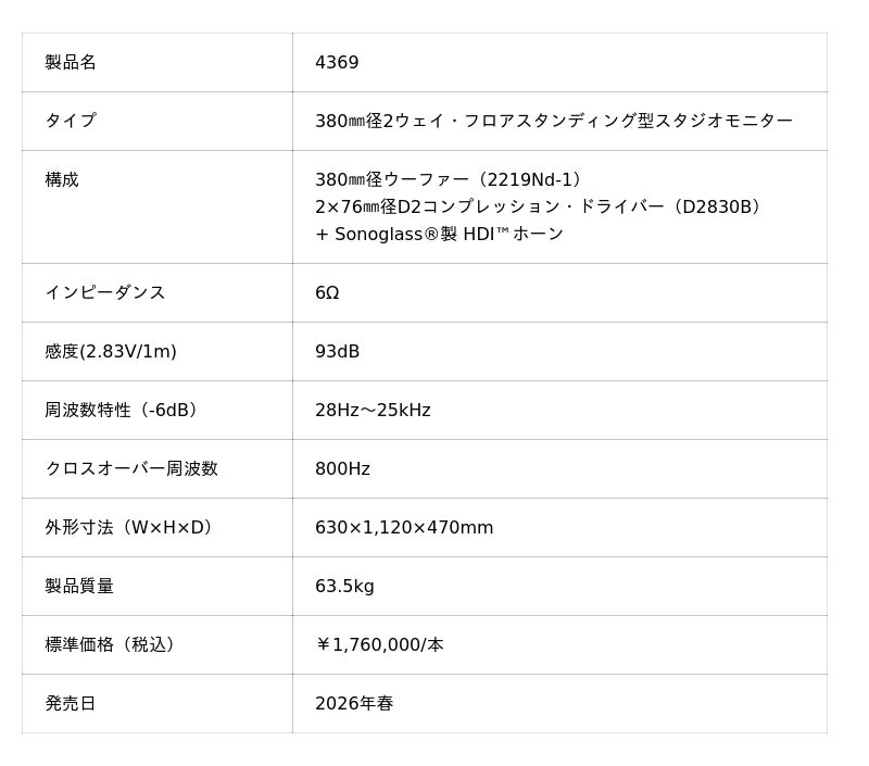 JBLの伝統と革新技術が融合した究極の音楽体験を提供するJBLスタジオモニターのフラッグシップモデル 380mm径 2ウェイ・スタジオモニター「JBL 4369」発表