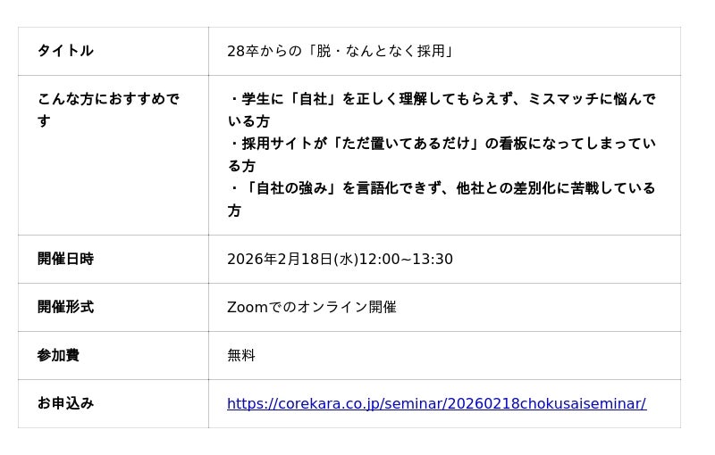 セミナー詳細:https://corekara.co.jp/seminar/20260218chokusaiseminar/